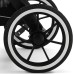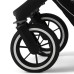 Шасі NXT90 легке алюмінієве і має великі поворотні передні колеса діаметром 23 см, задні колеса 30 см, завдяки цьому коляска демонструє чудові ходові якості при їзді як на рівній твердій поверхні так і при їзді по піску або снігу. Білий ободок на покришці доповнює витончений образ коляски. Колеса не проколюються. Завдяки своїй універсальній конструкції шасі не тільки чудово виглядає, але і має відмінну амортизацію яка дозволить згладити нерівності будь-якої дороги. Ручка у коляски регулюється в 8 положеннях по висоті від 68 до 115 см, підлаштовуючись під необхідну висоту. Ще ручка регулюється телескопічним чином в 6 положеннях, що набагато зручніше для мами. Легко і просто встановити люльку на шасі коляски або змінити її на прогулянковий блок, а також закріпити адаптер для автокрісла якщо ви вирішите використовувати автокрісло групи 0. Надійність і легкість в управлінні це відмінна риса коляски Emmaljunga NXT90 Silver FLAT Lounge Beige. Гальмівна система розташована на шасі, надійно фіксує коляску. Шасі дуже компактно складається книжкою і є дуже комфортним для транспортування і зберігання.